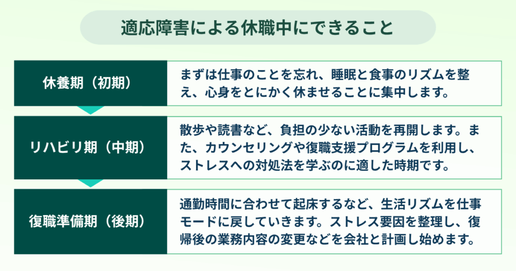 休職期間は、回復のフェーズに合わせて過ごし方を変えることが推奨されます。