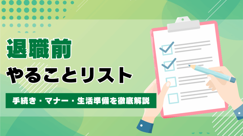 この記事では、退職前にやるべきことを「基本の手続き」「社会保険や失業保険」「マナーや引き継ぎ」「生活準備」の4つに分けて解説します。流れを知って計画的に進めれば、余計な不安を抱えることなく、安心して次のステップに進めるでしょう。