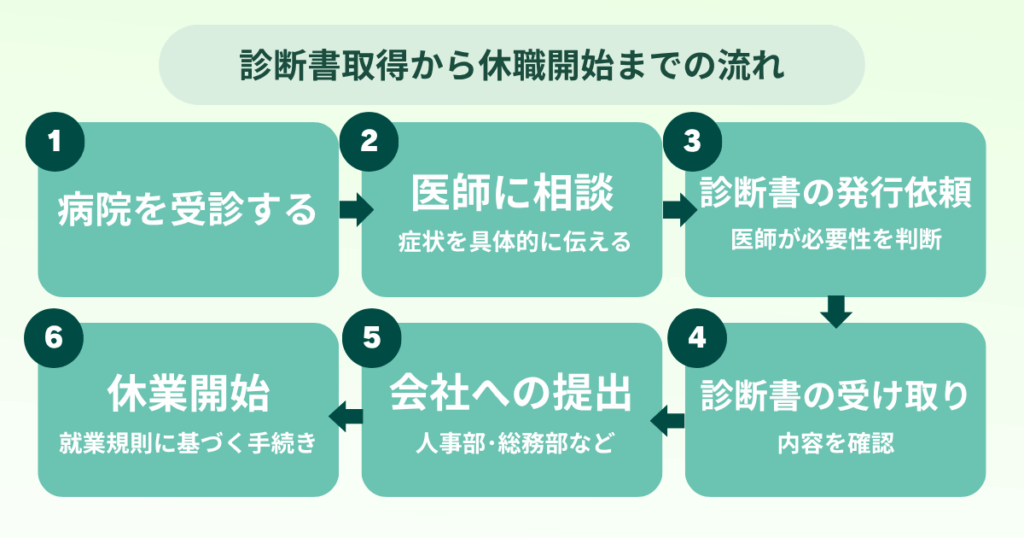 診断書を会社に提出すると、以下のような流れで手続きが進みます。