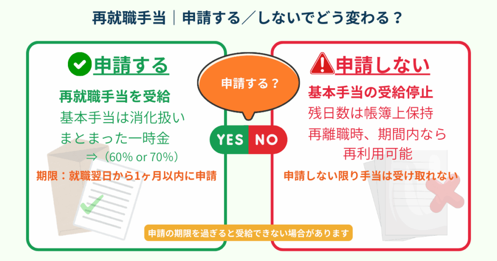 再就職手当を申請しない場合にどんな扱いになるのか、手続き面や将来の受給への影響を整理しておきましょう。