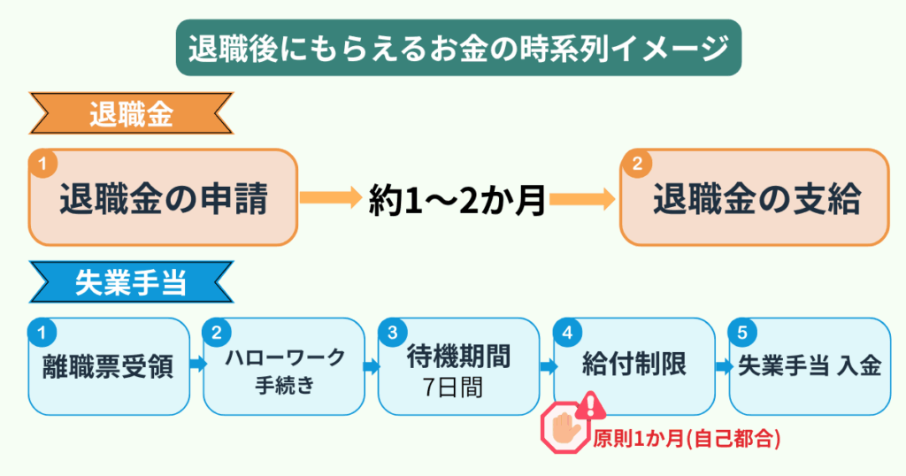 退職給付金と失業手当は、受け取れる時期や手続きの順番が異なります。