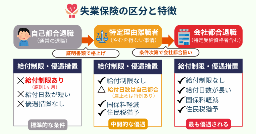特定理由離職者に認定されると、自己都合よりも有利な条件で失業保険や関連制度を利用できます。