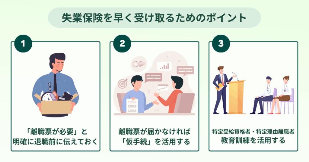 ここでは、失業保険を少しでも早く受給するための3つの重要なポイントを解説します。